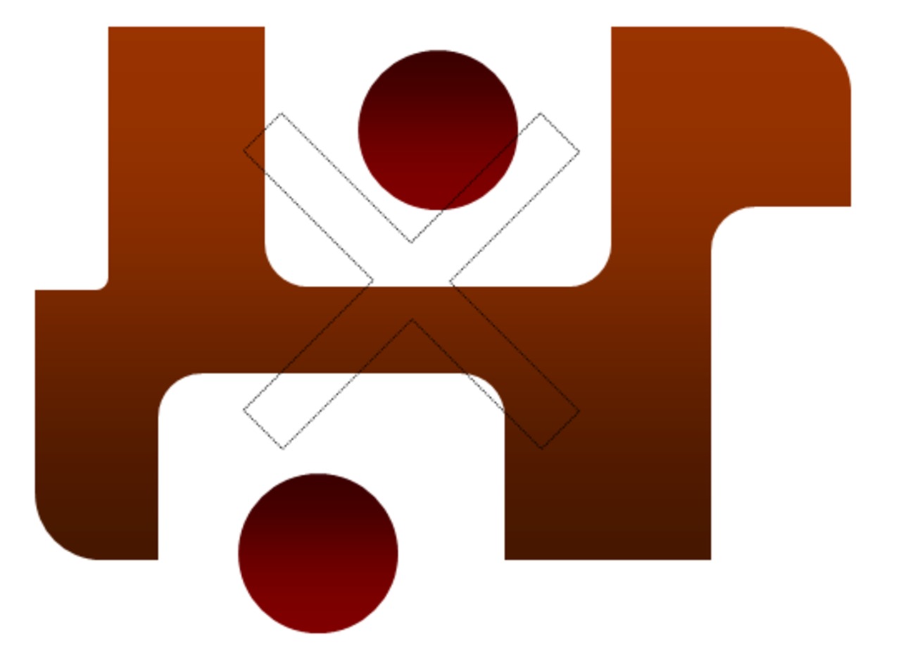 「変則角丸四角白抜き丸グラデ2個ロゴ」