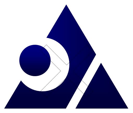 「三角青グラデーション丸、ライン白抜きロゴ」